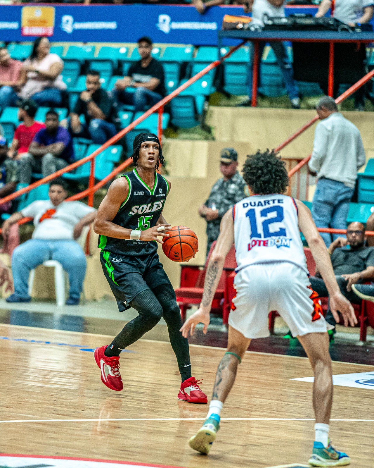 LA VEGA.- Dikembe Andre Da Silva fue el hombre grande para los Soles, en el triunfo 92-88 sobre los campeones Reales de La Vega, durante el partido de La Súper Liga de la LNB que se celebró en el Palacio de los Deportes Fernando Teruel.