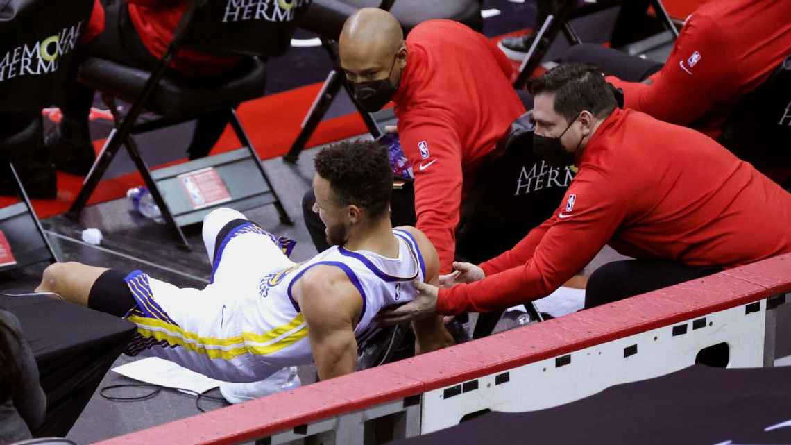 La lesión ocurrió en la última jugada del cuarto, luego de que Curry falló un triple fuera de balance. El impulso lo llevó fuera de la duela y lo mandó hacia las bandas en el banco de los Rockets.