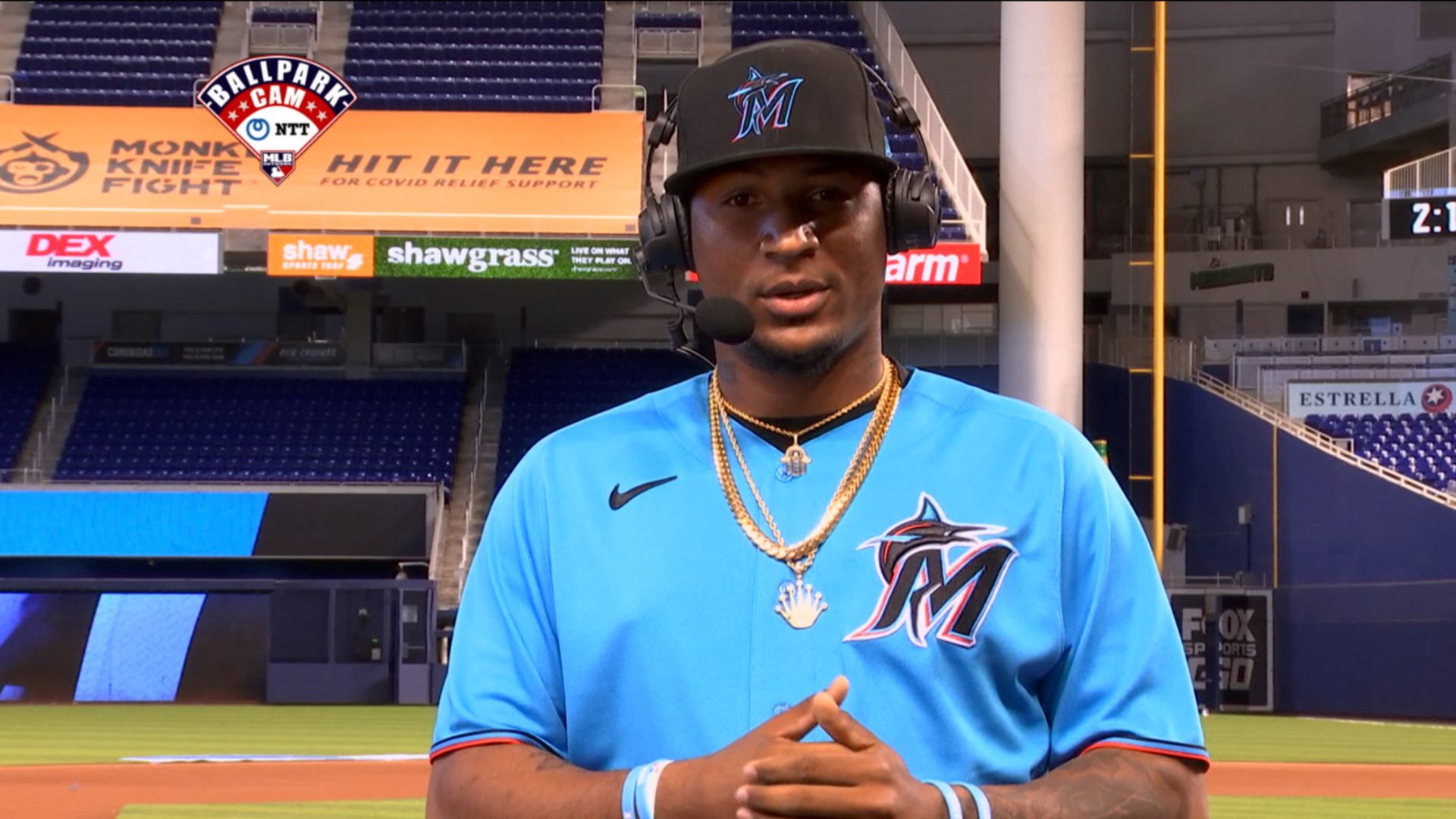 Como invitado en MLB Network, Sánchez fue entrevistado por el Salón de la Fama, Pedro Martínez, quien estaba en el estudio junto a Alexa Datt. Sánchez, el novato sensación de los Marlins, estaba en el Marlins Park en Miami.
