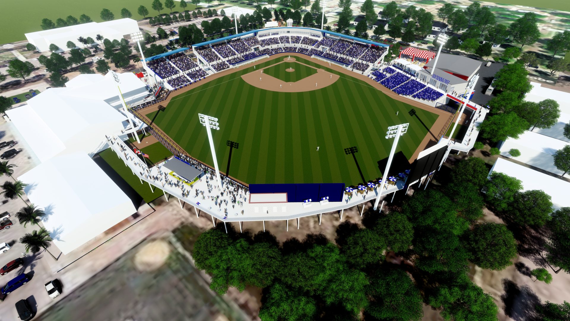 Su primer partido en casa está programado para el 8 de abril contra los Angelinos de Los Ángeles. TD Ballpark, el hogar de entrenamiento primaveral del equipo desde 1977, es la opción más probable de los Azulejos como hogar temporal si las restricciones de viaje de Canadá relacionadas con la pandemia de COVID-19 no se levantan antes de abril, según Topkin. Los funcionarios de la ciudad de Dunedin ya han indicado que están ansiosos por ayudar a los Blue Jays si es necesario. Vince Gizzi, director de parques y recreación de Dunedin, dijo: