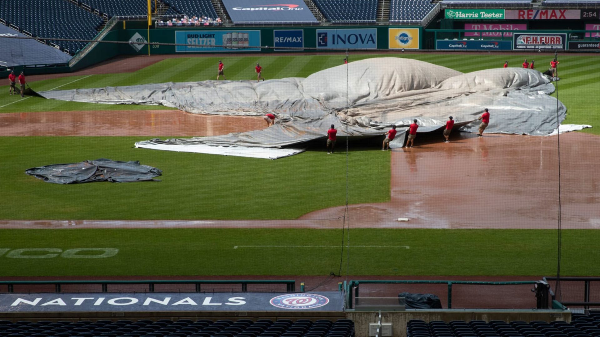 Strasburg permaneció en el montículo el tiempo suficiente para encarar a tres bateadores más y recibir otros tres hits de los Orioles en un partido que finalmente fue suspendido con Baltimore al frente 5-2 en la parte alta de la sexta entrada -debido a que el personal tuvo problemas para desenrollar la lona una vez que la lluvia se hizo presente.