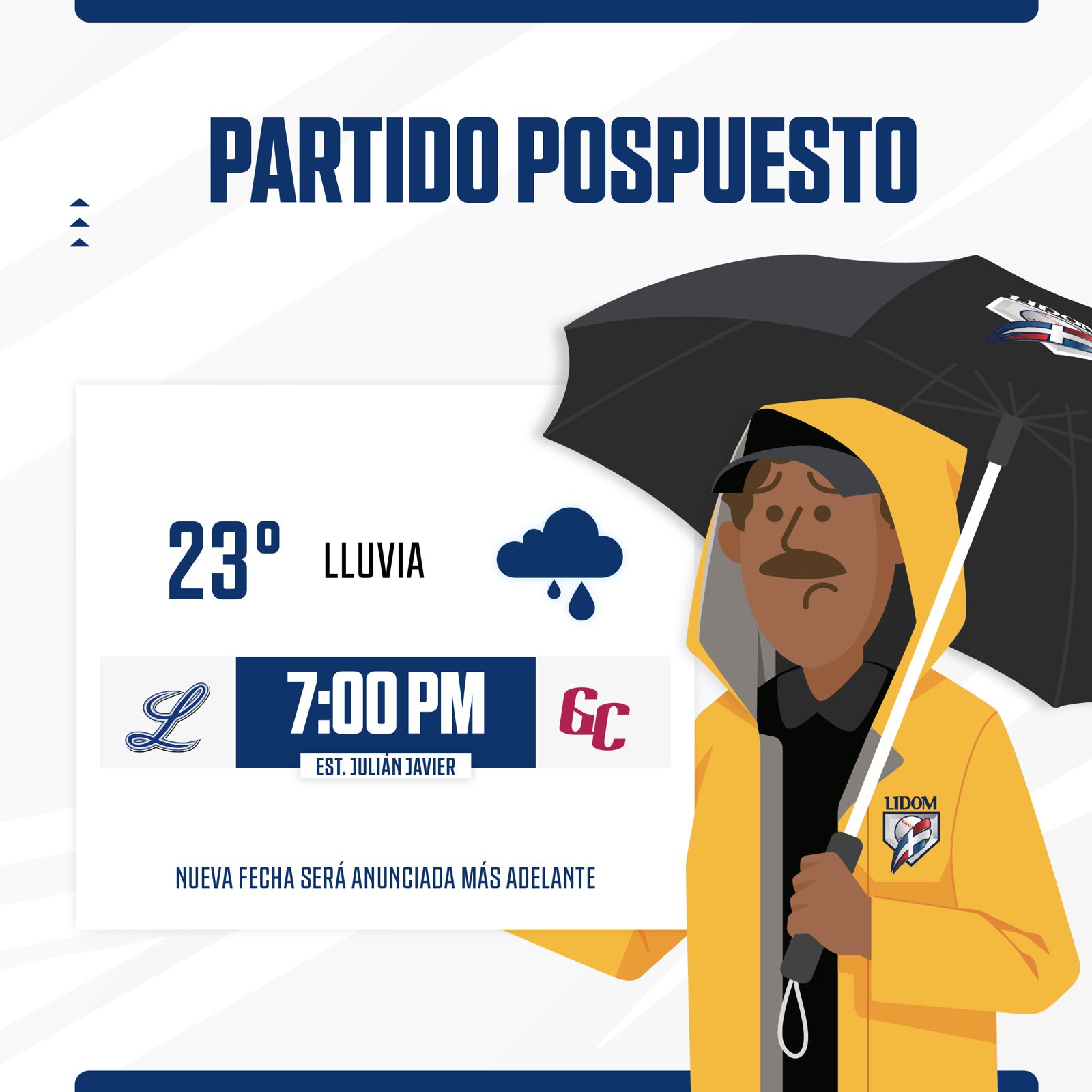 Para mañana jueves los Gigantes del Cibao tendrán que viajar a San Pedro de Macorís para jugar contra las Estrellas Orientales el partido que fue suspendido ayer por lluvia, mientras que la liga también reasignó el juego pospuesto el pasado 24 de noviembre entre Gigantes y Toros en San Francisco de Macorís para celebrarse el próximo sábado en el mismo estadio.