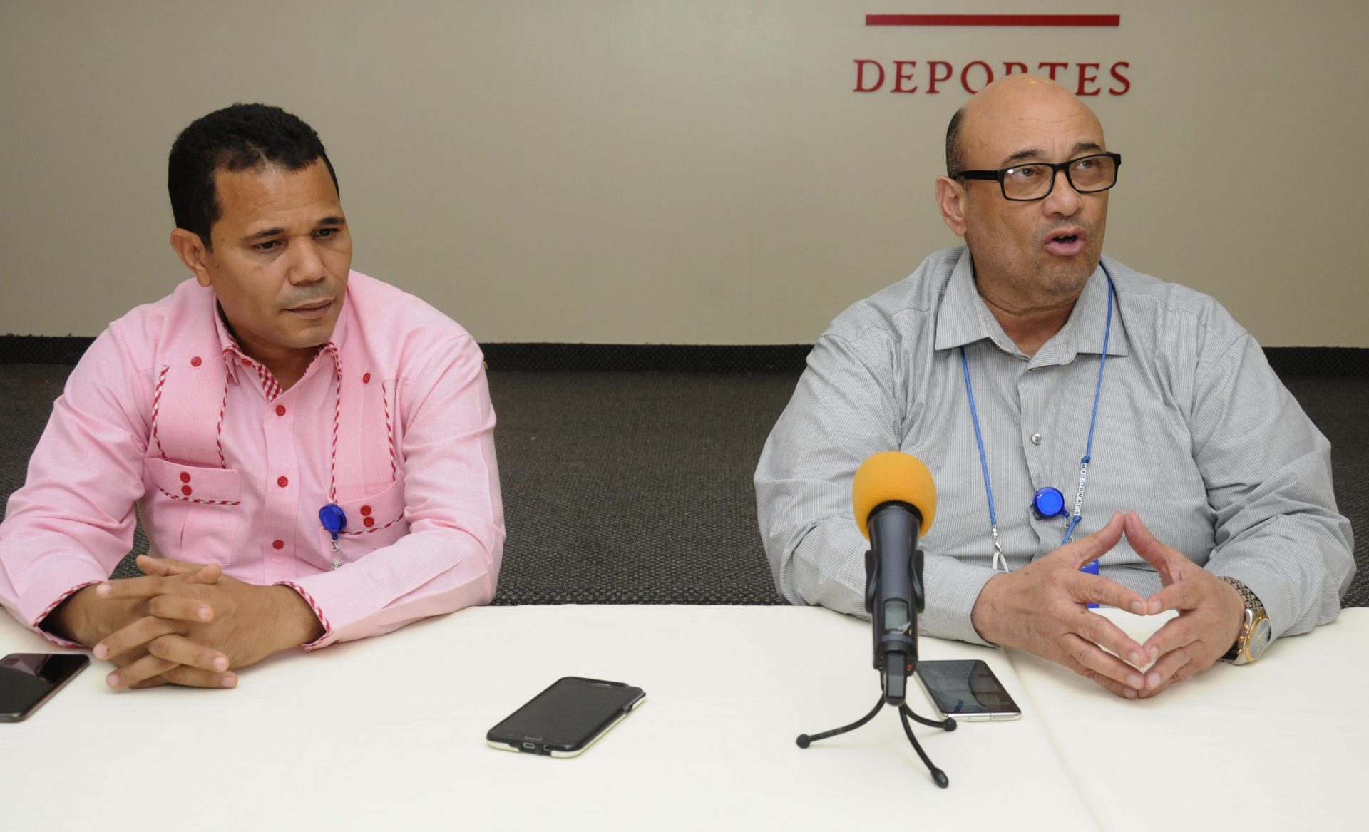 Oscar Maldonado, secretario general de la Federación Dominicana de Taekwondo, ofrece los detalles de lo que será el Congreso Nacional de Actualización. A su lado figura José Paulino, cosecretario. Fuente Externa