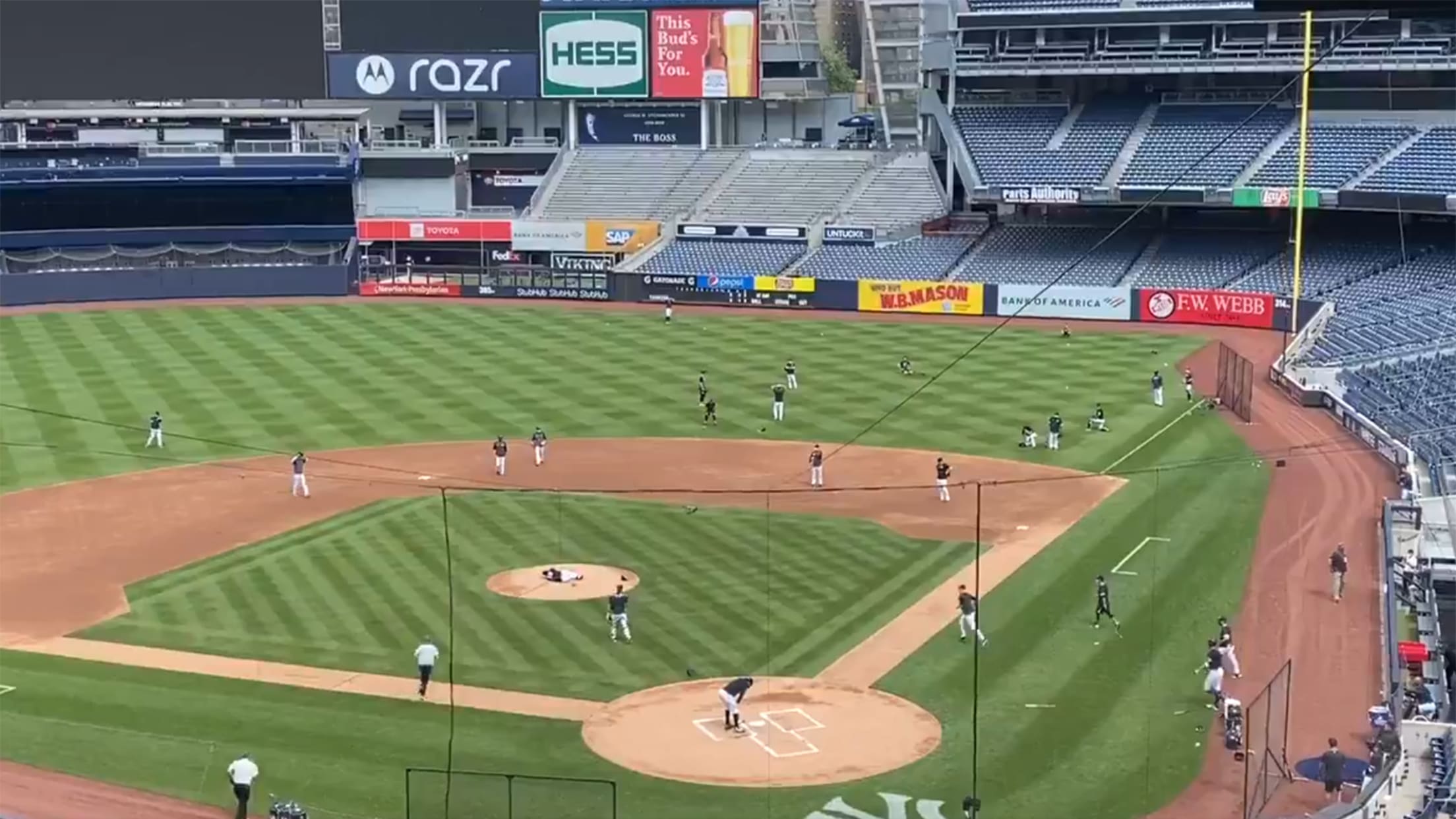 Tanaka le lanzaba a Stanton cuando el segundo conectó un batazo que golpeó al japonés del lado derecho de la cabeza