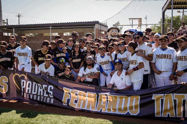 La jornada concluyó con un juego de exhibición entre equipos mixtos, donde los jóvenes lucieron uniformes del conjunto de San Diego.