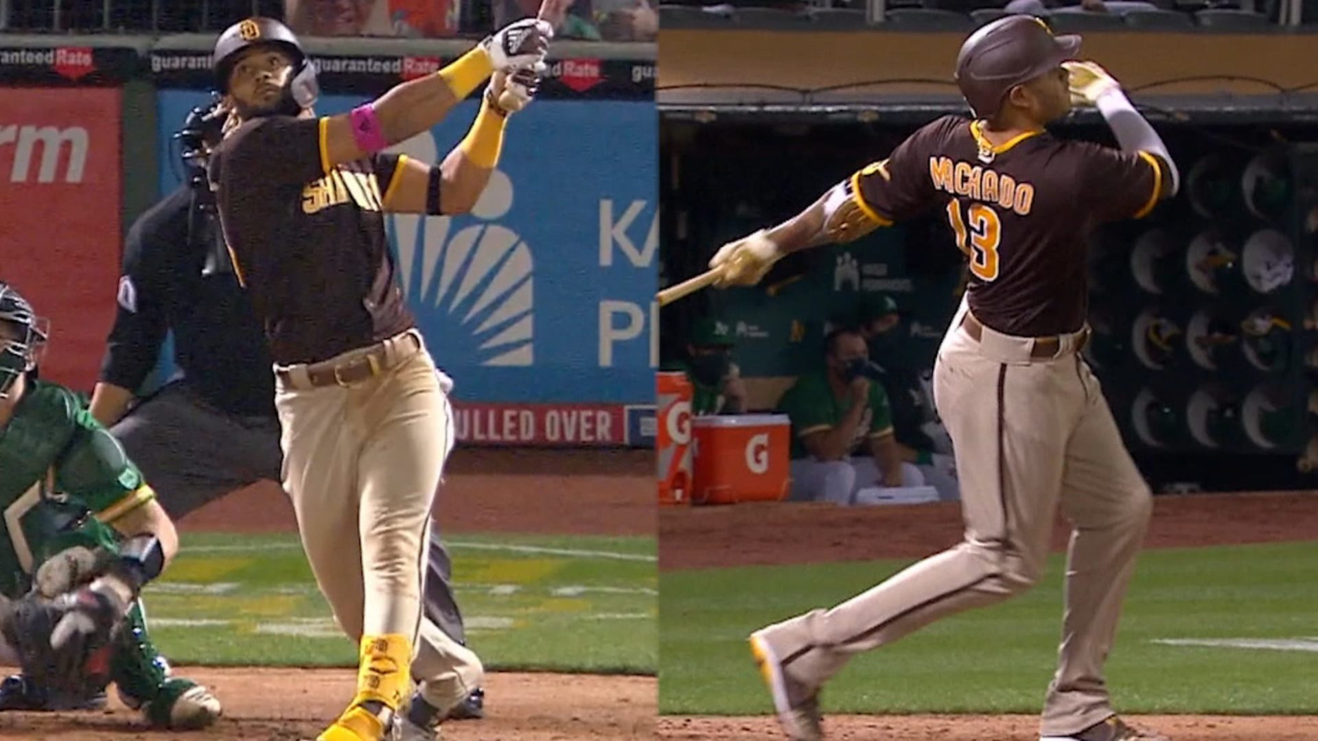 OAKLAND, California.– Fernando Tatis Jr. y Manny Machado conectaron jonrones seguidos en la séptima entrada, y los Padres de San Diego vapulearon el viernes 7-0 a los Atléticos de Oakland.