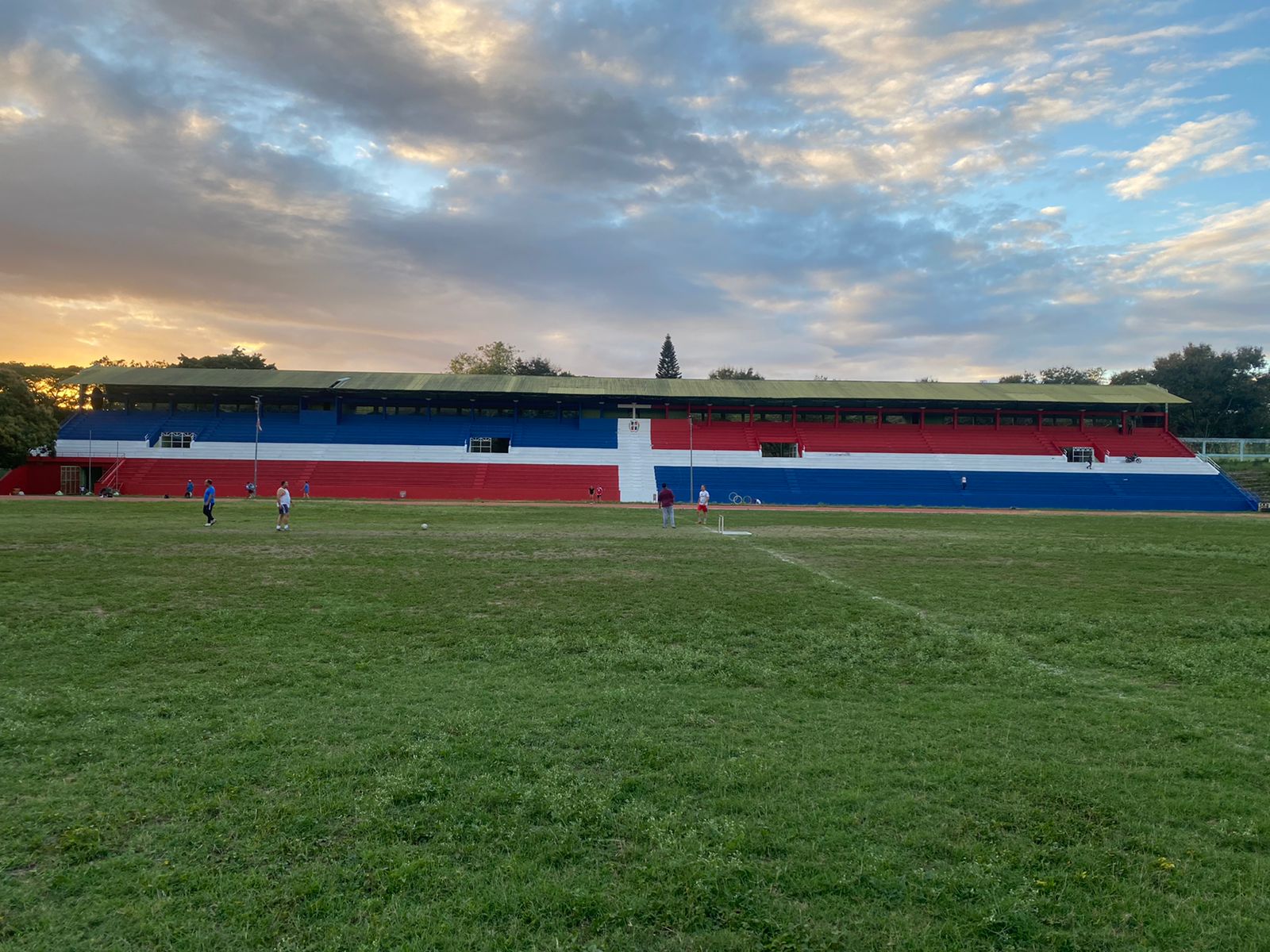 La gradería de la instalación ha sido pintada con una gigante bandera nacional, donde sobresalen los colores azul y rojo en cuadros y una cruz  blanca como la idearon los padres de la patria.