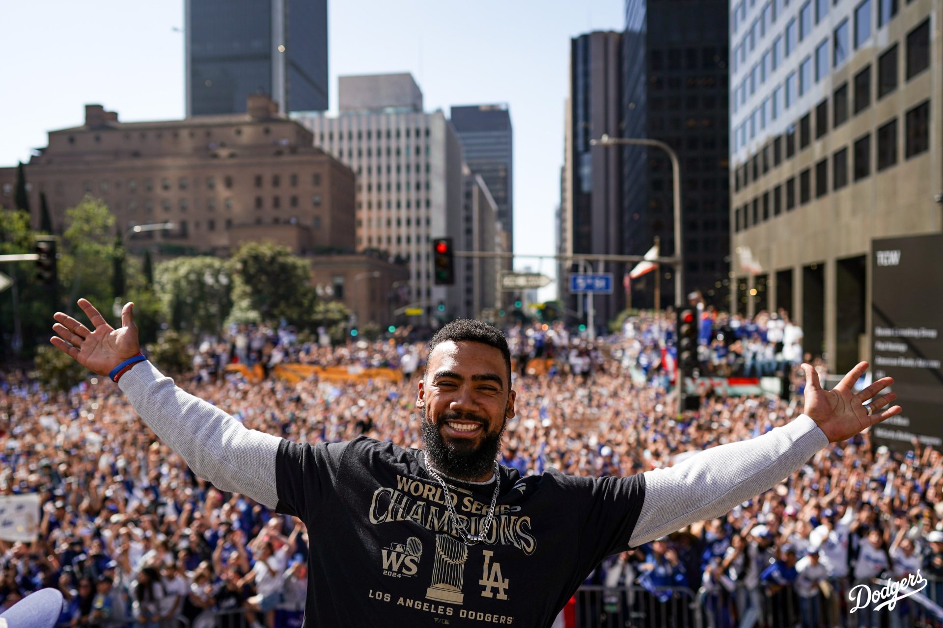 Mientras los Dodgers celebran su título de la Serie Mundial con un desfile seguido de un mitin en un Dodger Stadium fue el jardinero dominicano conocido por sus grandes swings y su gran sonrisa quien brilló en el escenario.