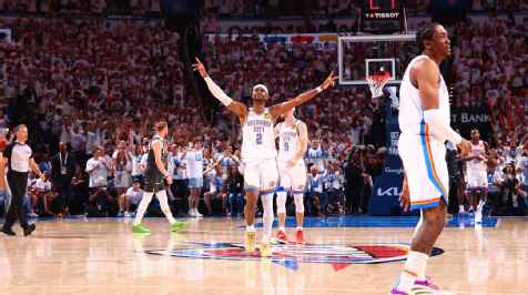 El Thunder montó una racha de 10-0 en el tercer periodo para tomar una ventaja de 66-60. Poco después, Kenrich Williams, un suplente poco utilizado en esta postemporada, encestó un tiro de media distancia y un triple en posesiones consecutivas para poner al Thunder arriba por 71-62.