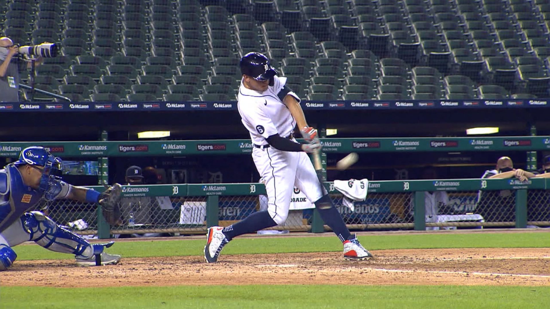 Jonathan Schoop logró también un batazo de cuatro esquinas por los Tigres. El dominicano Maikel Franco aportó dos dobles y un sencillo por Kansas City, mientras que Whit Merrifield consiguió un par de inatrapables y anotó en un par de ocasiones.