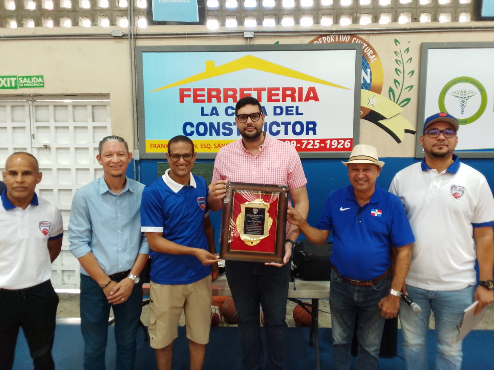 Luego el  vicepresidente de la Federación Dominicana de Baloncesto (Fedombal) licenciado Emmanuel Trinidad acompañado de los directivos de la Asociación de Baloncesto de la provincia Duarte entregaron una placa de reconocimiento al doctor José Miguel Sánchez por sus valiosos aportes al baloncesto provincial.