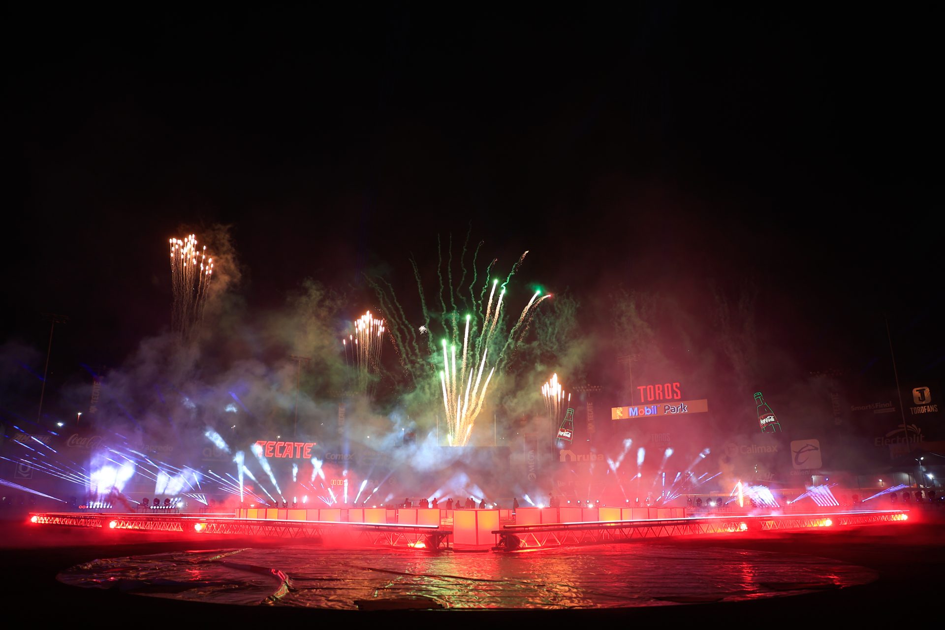 Con un gran cierre, la pirotecnia puso a gozar a los asistentes tras deleitarse visualmente con una gran variedad de colores en el cielo previo al primer playball de la temporada en casa.