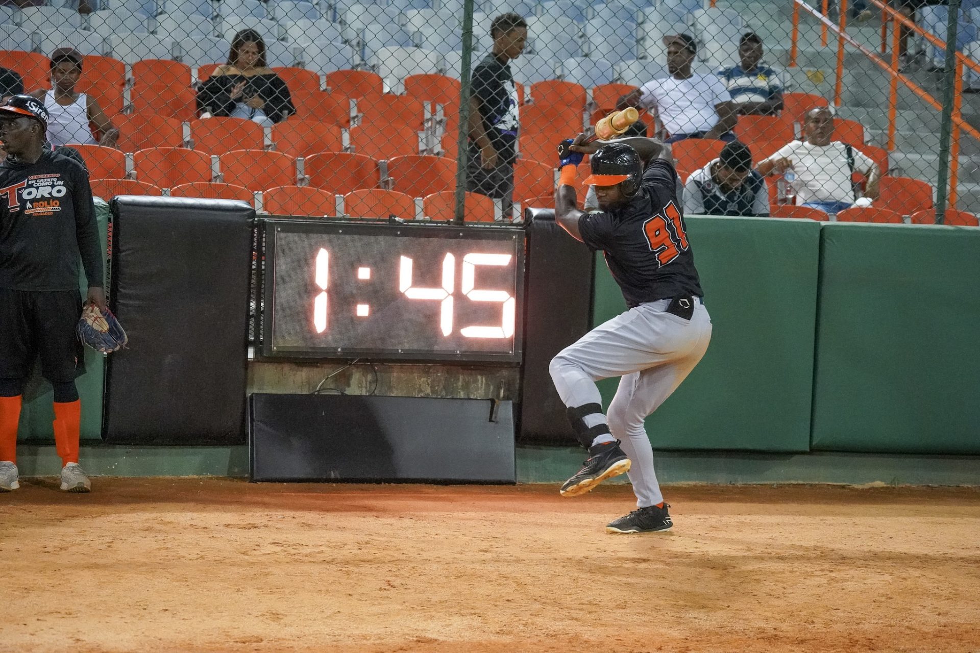 LA ROMANA.- En un día donde los Toros del Este recibieron vitales integraciones a los entrenamientos, el club romanense estrenó el reloj como parte de las nuevas reglas que se implementarán en la venidera temporada, en un partido de pretemporada ante las Estrellas Orientales celebrado en el Estadio Francisco Micheli.