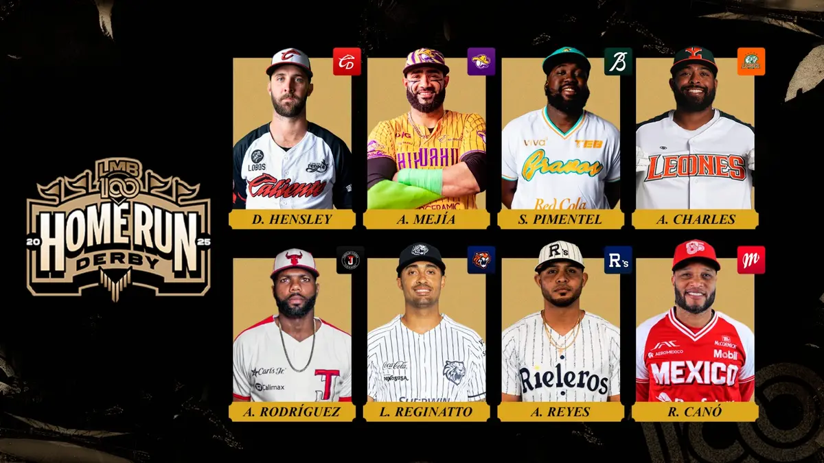 Ciudad de México (www.lmb.com.mx) .- ¡Todo listo para la jornada más explosiva de la campaña! Los protagonistas del Home Run Derby LMB 2025 serán, por la Zona Norte, Aderlín Rodríguez (Toros de Tijuana), Alejandro Mejía (Dorados de Chihuahua), Ángel Reyes (Rieleros de Aguascalientes) y David Hensley (Caliente de Durango).