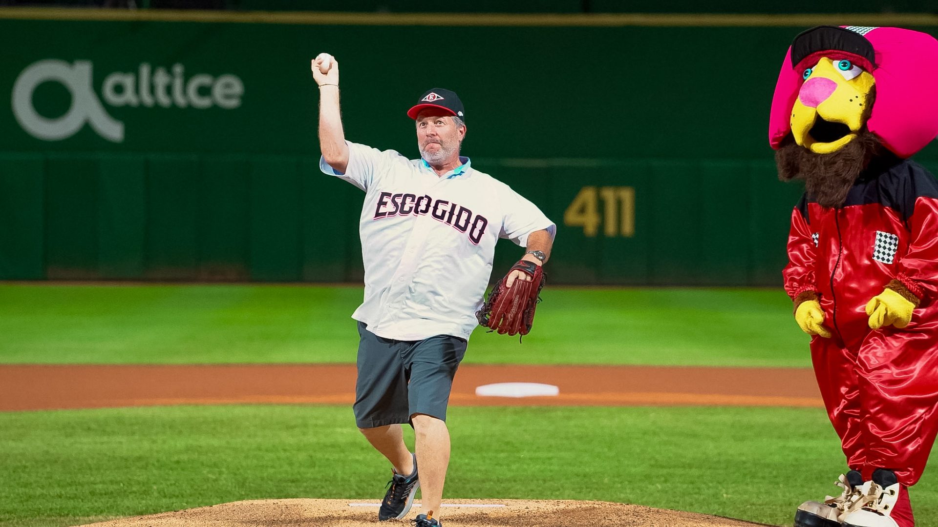 Previo al partido, el director ejecutivo de la escudería McLaren Racing de la Fórmula 1, Zak Brown, realizó el lanzamiento de honor, invitado por el dirigente Albert Pujols y los Leones del Escogido.