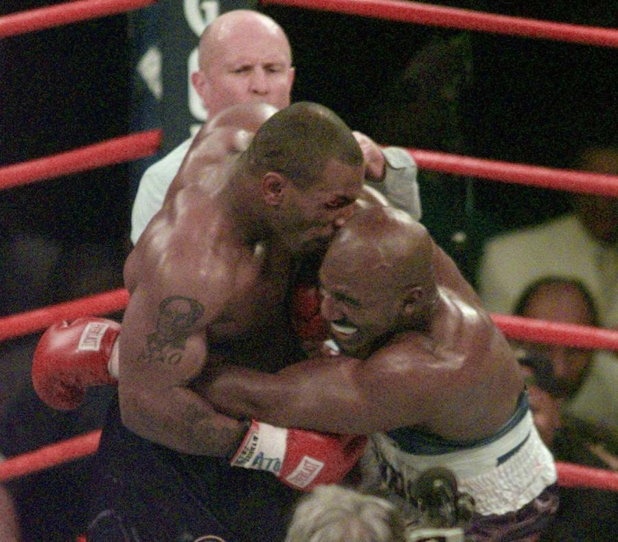 La rivalidad entre ambos boxeadores tiene como acento el momento en que Mike Tyson (izq.) arrancó un pedazo de la oreja de Evander Holyfield con una mordida durante una pelea de campeonato en 1997. (AP)