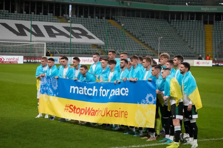 La mayor parte del plantel de Ucrania generalmente proviene de clubes nacionales Dynamo de Kiev y Shakhtar Donetsk. Los equipos no pudieron reanudar sus actividades el 26 de febrero después de un receso de invierno y la mayoría de sus jugadores de otros países abandonaron Ucrania para escapar de la guerra. Los clubes han estado sosteniendo partidos amistosos en Europa esta semana.