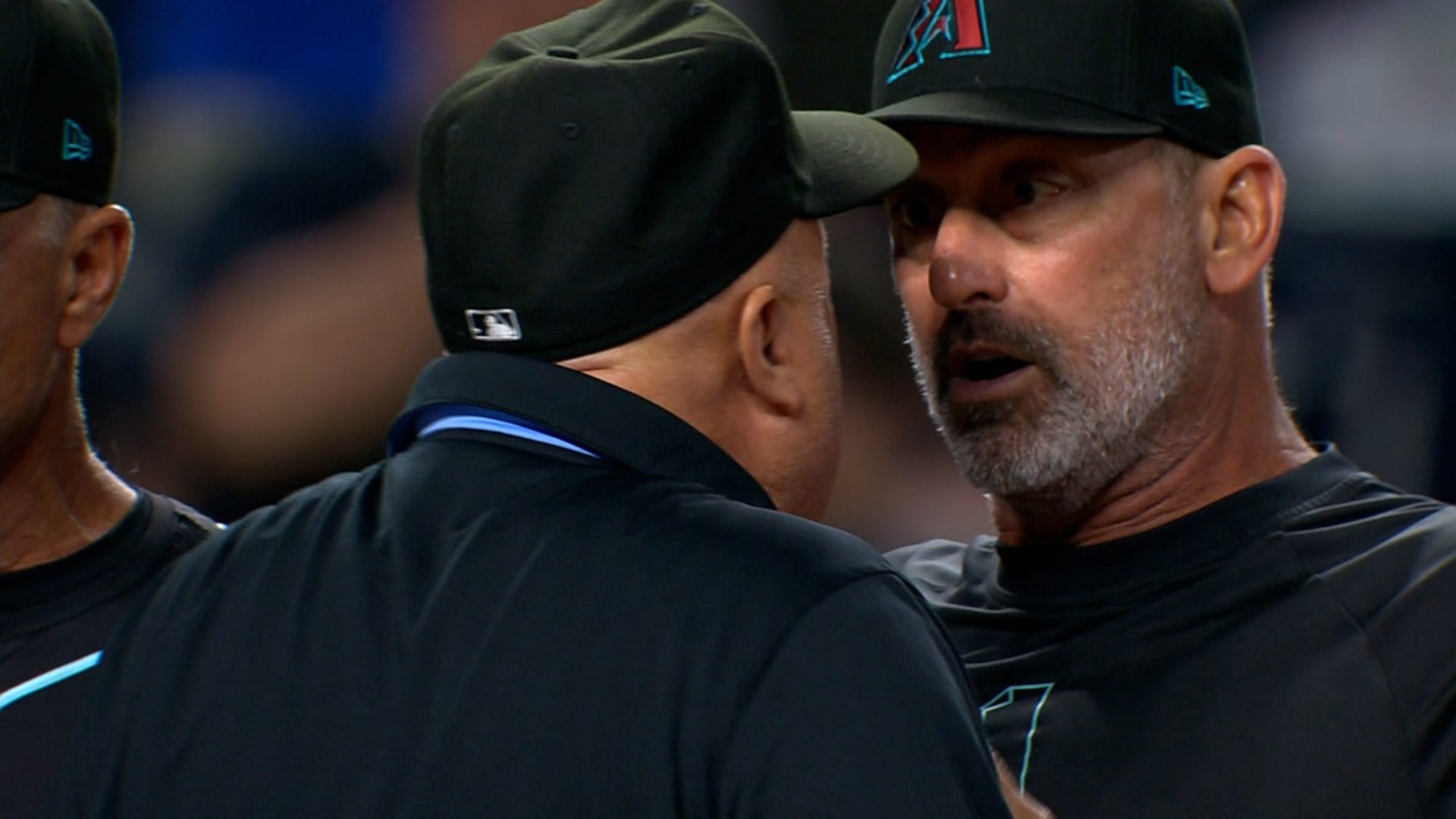 En la parte superior del séptimo acto, el relevista John Schreiber golpeó al venezolano Gabriel Moreno con un sinker en cuenta de 2-1. Se emitieron advertencias a ambos equipos, y el manager de los D-backs, Torey Lovullo, fue expulsado después de discutir con los árbitros.
