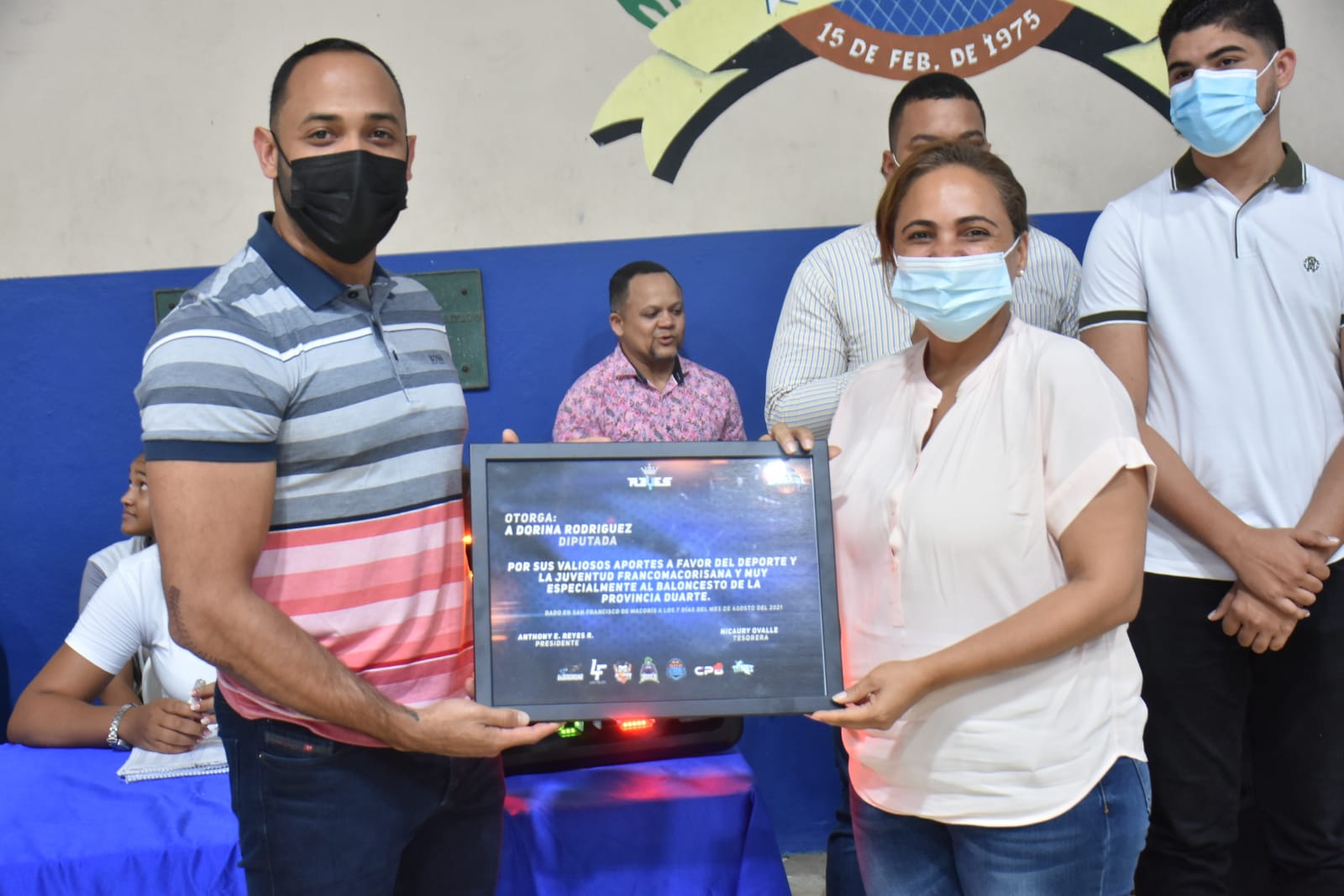Luego el comité organizador entregó sendas placas de reconocimientos al empresario Jeison de Jesús y la diputado Dorina Rodríguez por sus valiosos aportes en favor de la juventud francomacorisano.