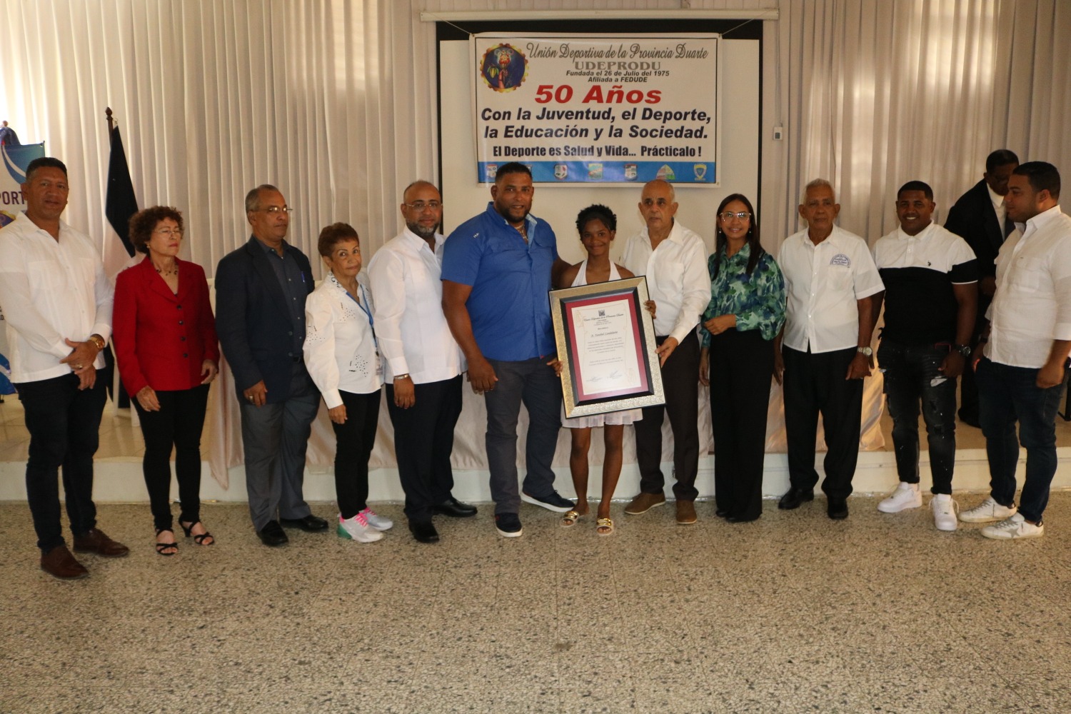 La Unión Deportiva de la Provincia Duarte reconoció en el Municipio de Pimentel en Voleibol a Yocely Claret, en Castillo en Atletismo a Reyson Antonio Rojas.