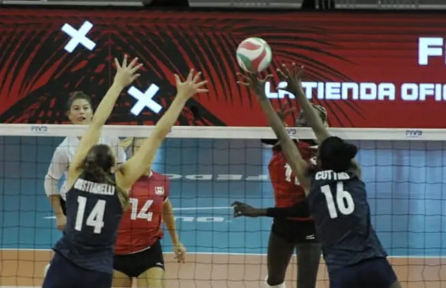 Las mejores anotadores por los Estados Unidos Danielle Cuttino con 15 puntos, Verónica Perry 15 puntos, 13 de ellos en remates.