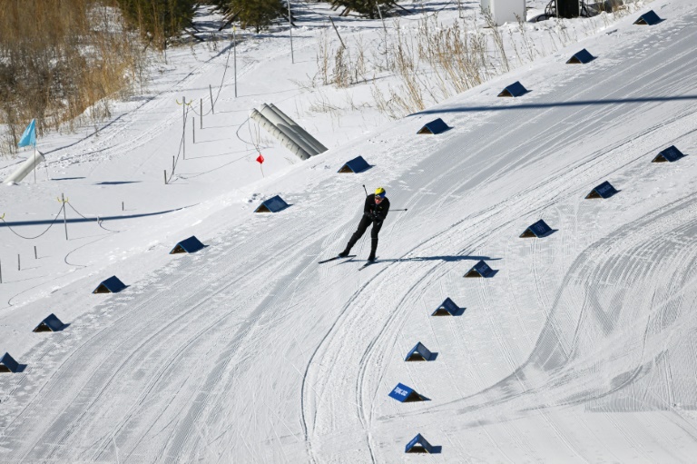 Un deportista calienta en la pista de biatlón de los Juegos Olímpicos de Invierno de Pekín en Zhangjiakou el 1 de febrero de 2022. Fuente Externa