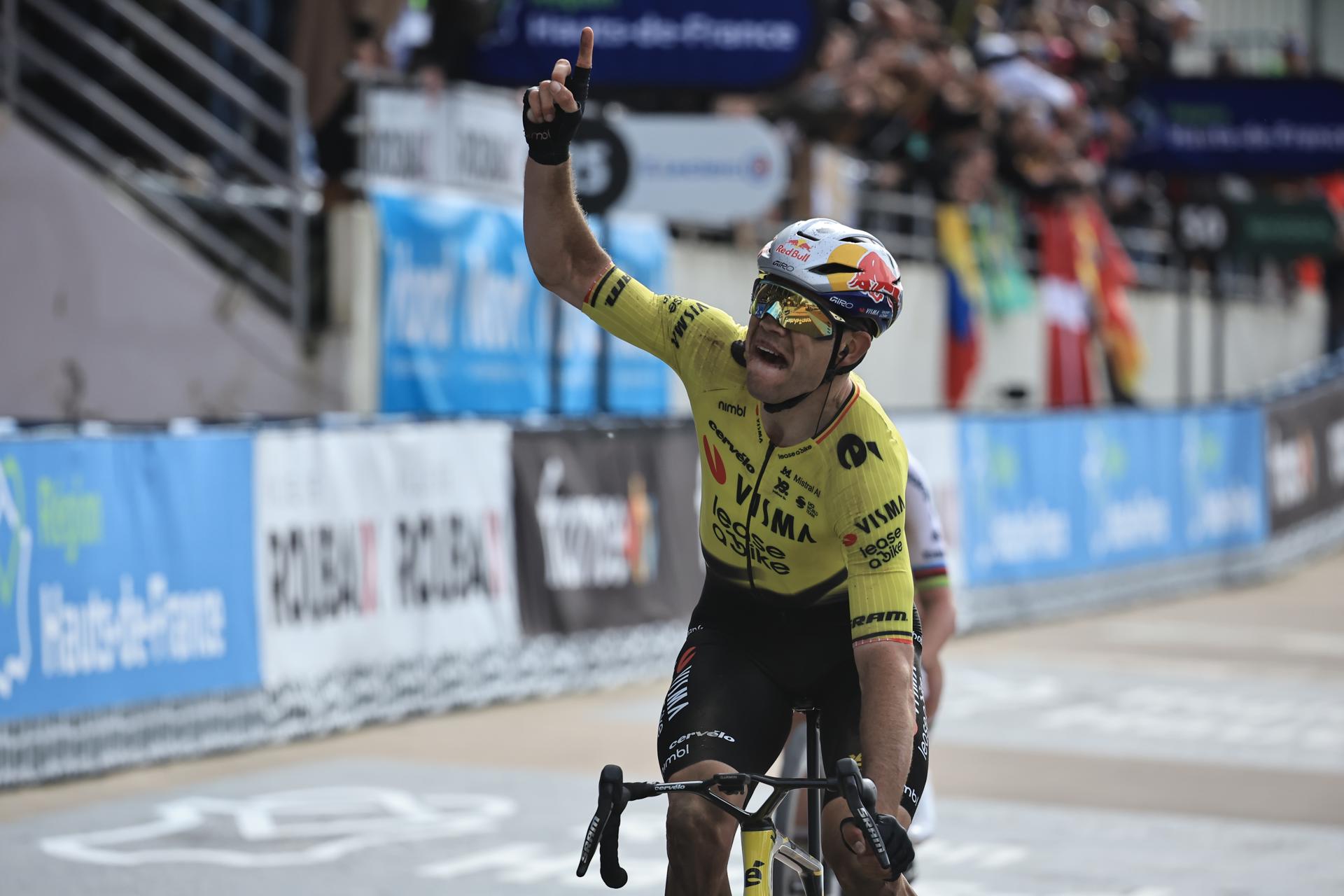 Redacción deportes, 12 abr (EFE).- El belga Wout Van Aert (Visma) abrazó la gloria como vencedor de la 113 edición de la París Roubaix, disputada a través de 258,3 km entre Compiègne y el velódromo de André-Pétrieux, tras superar en un histórico duelo mano a mano al gran favorito, el esloveno Tadej Pogacar.