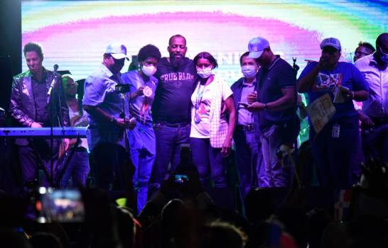 DON GREGORIO. Justo a las 8:30 pm la velocista Marileidy Paulino subió a la tarima acompañada de su madre Anatalia Paulino y el exjugador de Grandes Ligas e inmortal de Cooperstown, Vladímir Guerrero.