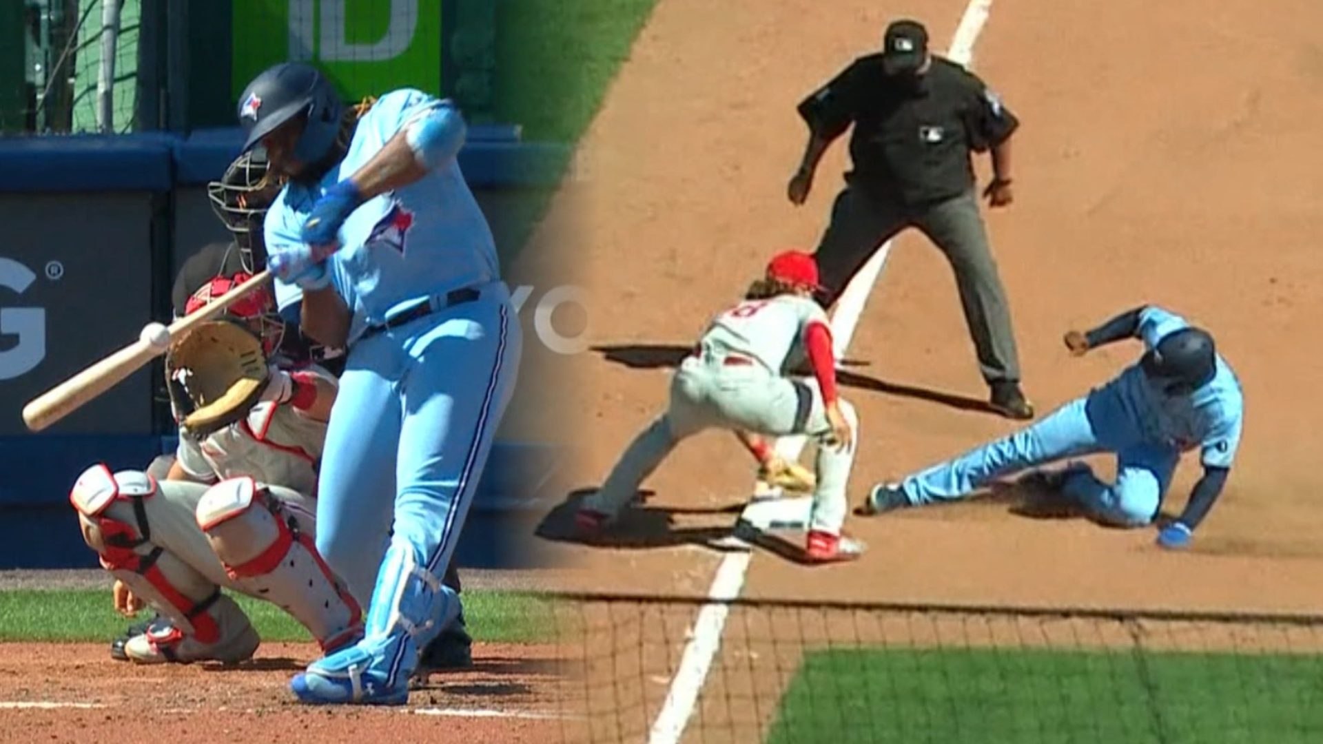 Si parpadeaste dos veces, quizás te perdiste las dos veces que el dominicano Vladimir Guerrero Jr. le pegó a la pelota con un solo swing la tarde del jueves durante la victoria de los Azulejos por 3-2 sobre los Filis.