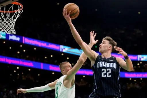 Con 61 puntos combinados entre Franz Wagner y Paolo Banchero, los Orlando Magic se anotaron este viernes el primer triunfo de su eliminatoria de primera ronda frente a los Boston Celtics por un ajustado 95-93.