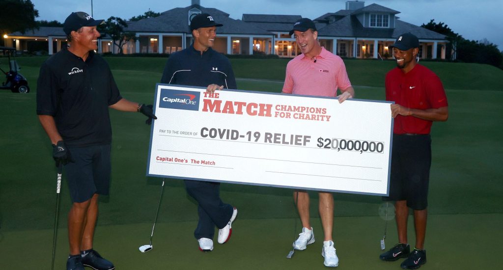 HOBE SOUN (Florida, EE.UU.).- La pareja formada por el golfista Tiger Woods y el exmariscal de campo de la Liga Nacional de Fútbol Americano (NFL) Peyton Manning se impuso este domingo a la de Phil Mickelson y Tom Brady, de los Buccaneers de Tampa Bay, en el partido benéfico “The Match” que recaudó 20 millones de dólares en la lucha contra el coronavirus.