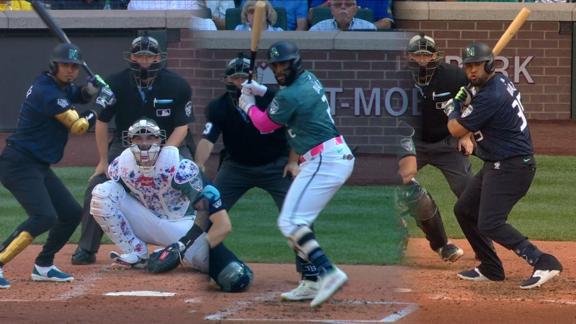 J.D. Martinez pegó un doble y anotó en un sencillo del venezolano Luis Arráez en el cuarto acto ante George Kirby de Seattle, lo que igualó la pizarra a 1. El cubano Lourdes Gurriel Jr. pareció empatar el encuentro de nuevo en el séptimo episodio, cuando su batazo por la raya del jardín izquierdo se consideró originalmente jonrón.