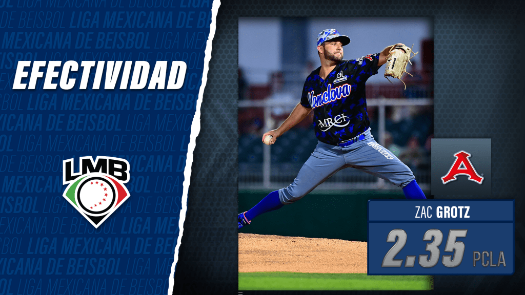 Zac Grotz lideró la temporada 2024 de la Liga Mexicana de Beisbol en efectividad con 2.35. El derecho de los Acereros de Monclova sólo admitió 20 carreras limpias en 76.2 entradas de trabajo.
