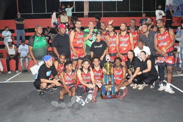 SAN FRANCISCO DE MACORÍS.- El quinteto de la zona Tres venció 71-68 a la zona Dos coronándose campeón del torneo de baloncesto superior zonal del club Santa Ana y de paso se alzó con la gran copa Pescadería Wanda.